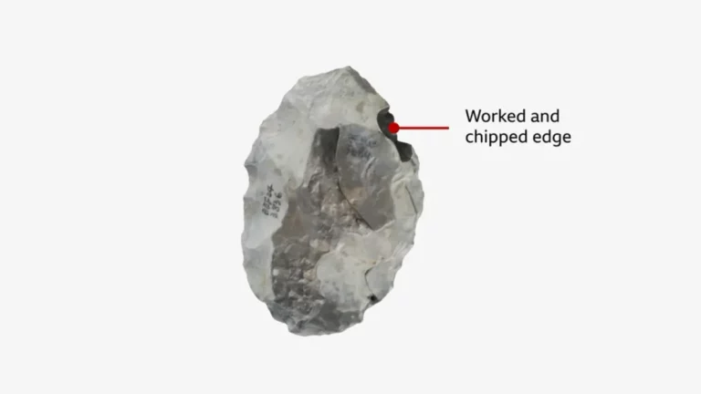 Profesori Ashton tregon njërin prej tyre: “Mund të shihni edhe se ku janë shkëputur copa, copa të vogla stralli, për shkak të nxehtësisë”. Ekipi i tij i kohës ka gërmuar depozita nga një periudhë e ngrohtë në fund të epokës së fundit më të rëndë të akullit të Britanisë, të varrosura në një copë balte, e cila ndodhet në një kanal të prerë nga një akullnajë qindra mijëra vjet më parë.