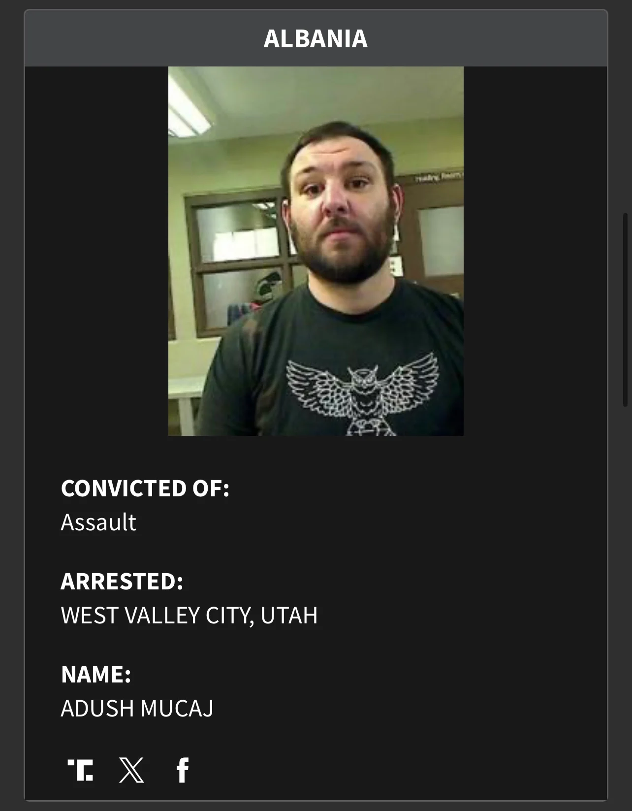 Adush Muçaj – me precedent për sulm fizik, ndaluar në Jutah.