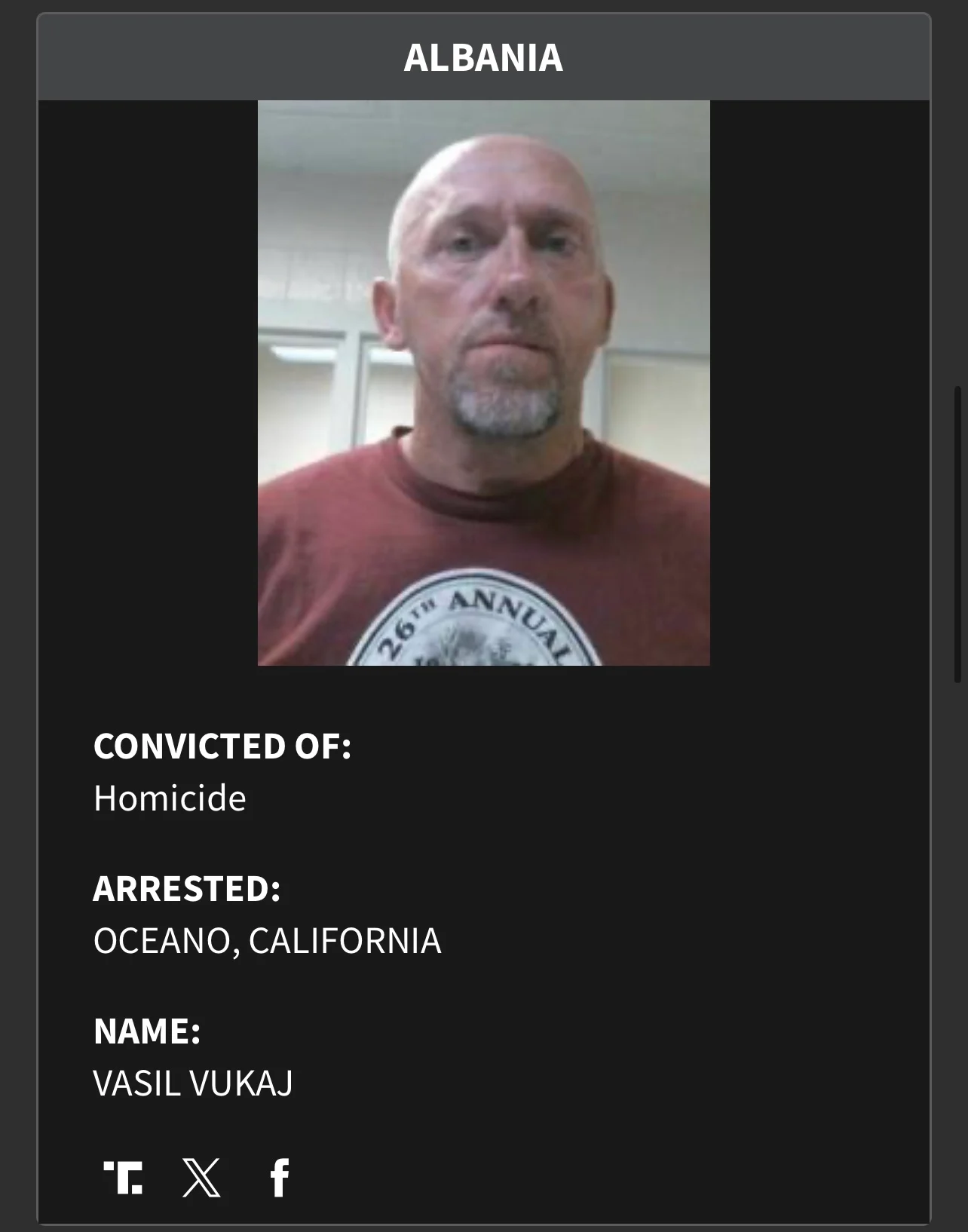 Vasil Vukaj – i shpallur fajtor për vrasje, u kap në Kaliforni.
