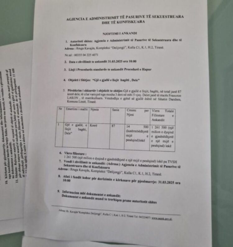 Sipas dokumenteve të publikuara, në një ankand të zhvilluar në muajin mars, AAPSK deklaronte se kishte 87 dele për shitje, të racës Lakon Franceze, me vendndodhje në Darësh, Komuna Linzë. Ankandi u anulua në të njëjtin muaj për shkak të mungesës së pjesëmarrësve, një procedurë normale në këto raste.