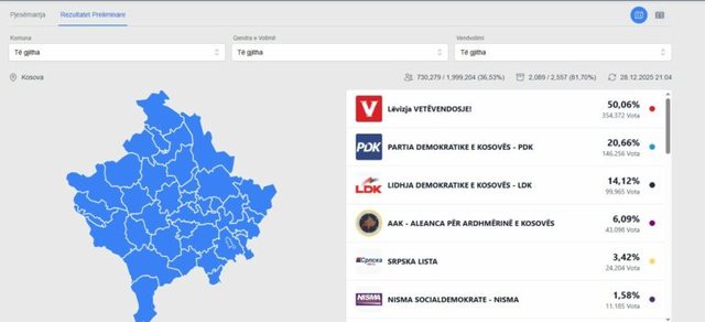 Sipas rezultateve të fundit të publikuara nga KQZ-ja, LVV-ja e Albin Kurtit është rrugës për të formuar vetë ekzekutivin e ri të vendit.
