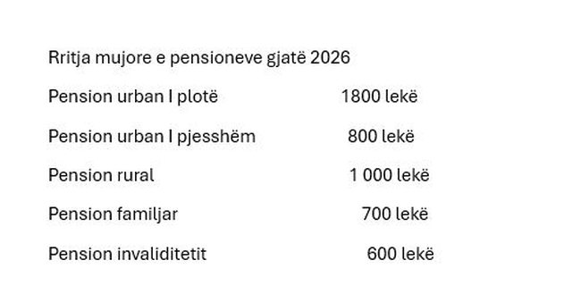 Rritja do të jetë e përmuajshme sipas kategorive të ndryshme të pensionistëve.